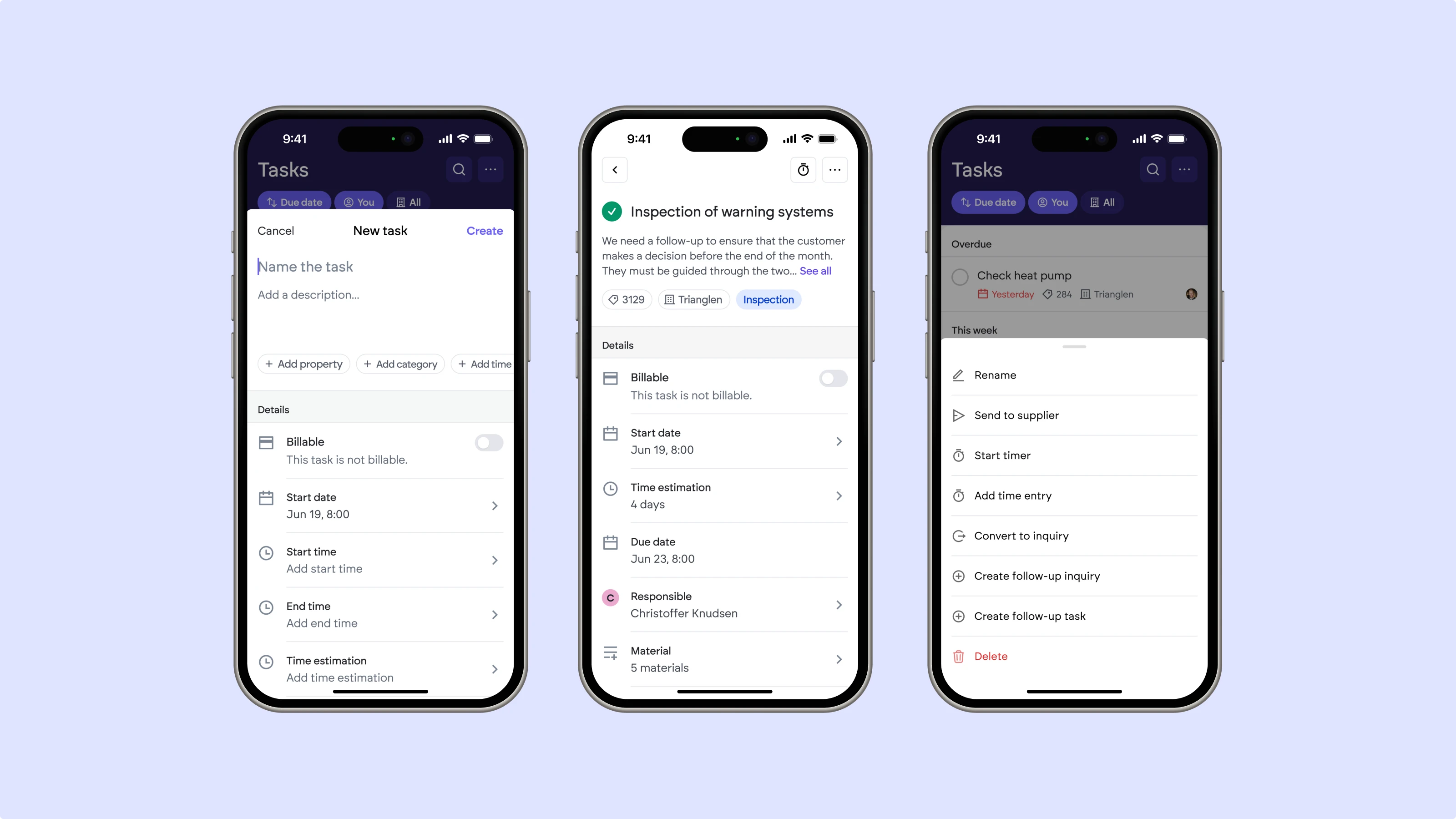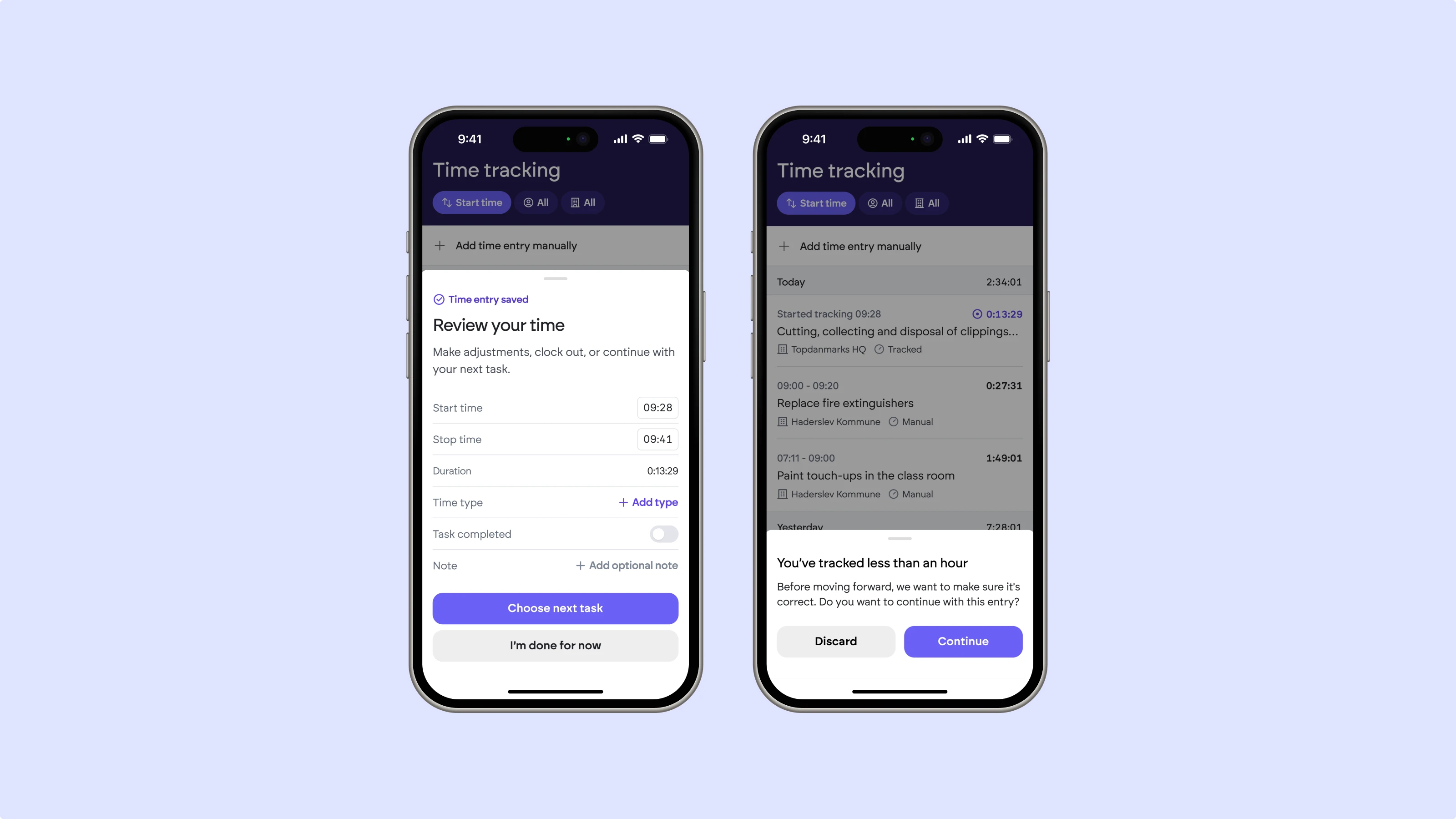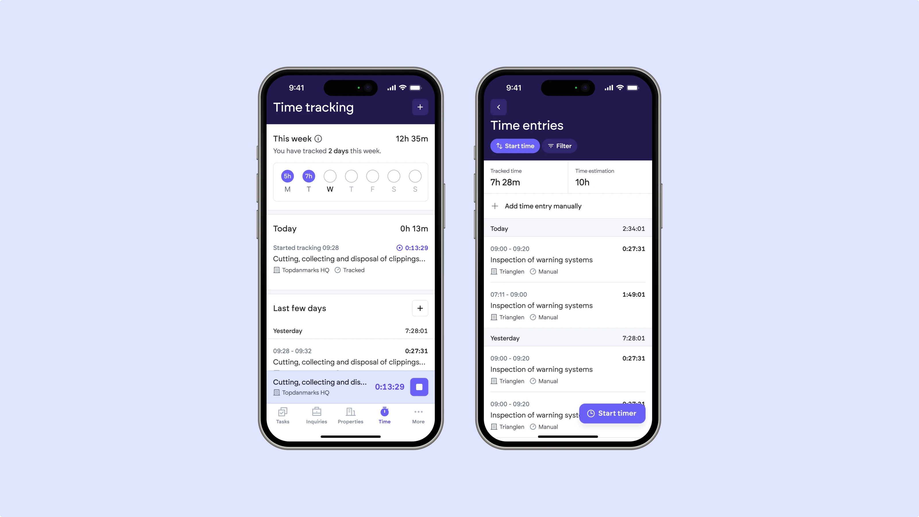 Our goal was to give them a tool that fits their workflow: simple, intuitive, and fast. The app needed to handle everything from tracking tasks and hours to communicating with tenants and colleagues. All in a few taps.