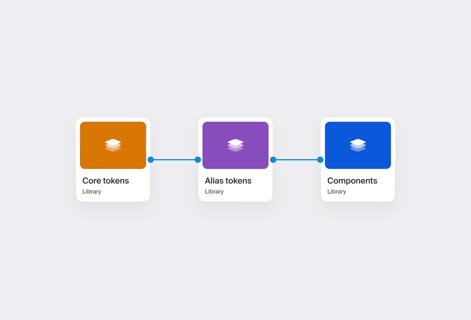 Core token and Alias token libraries are published in Figma and linked to all relevant design files, allowing designers to pull updates automatically and ensure all projects stay aligned with the latest token definitions. Any updates to core tokens cascade through alias tokens, keeping the system consistent and adaptable across different themes and components.