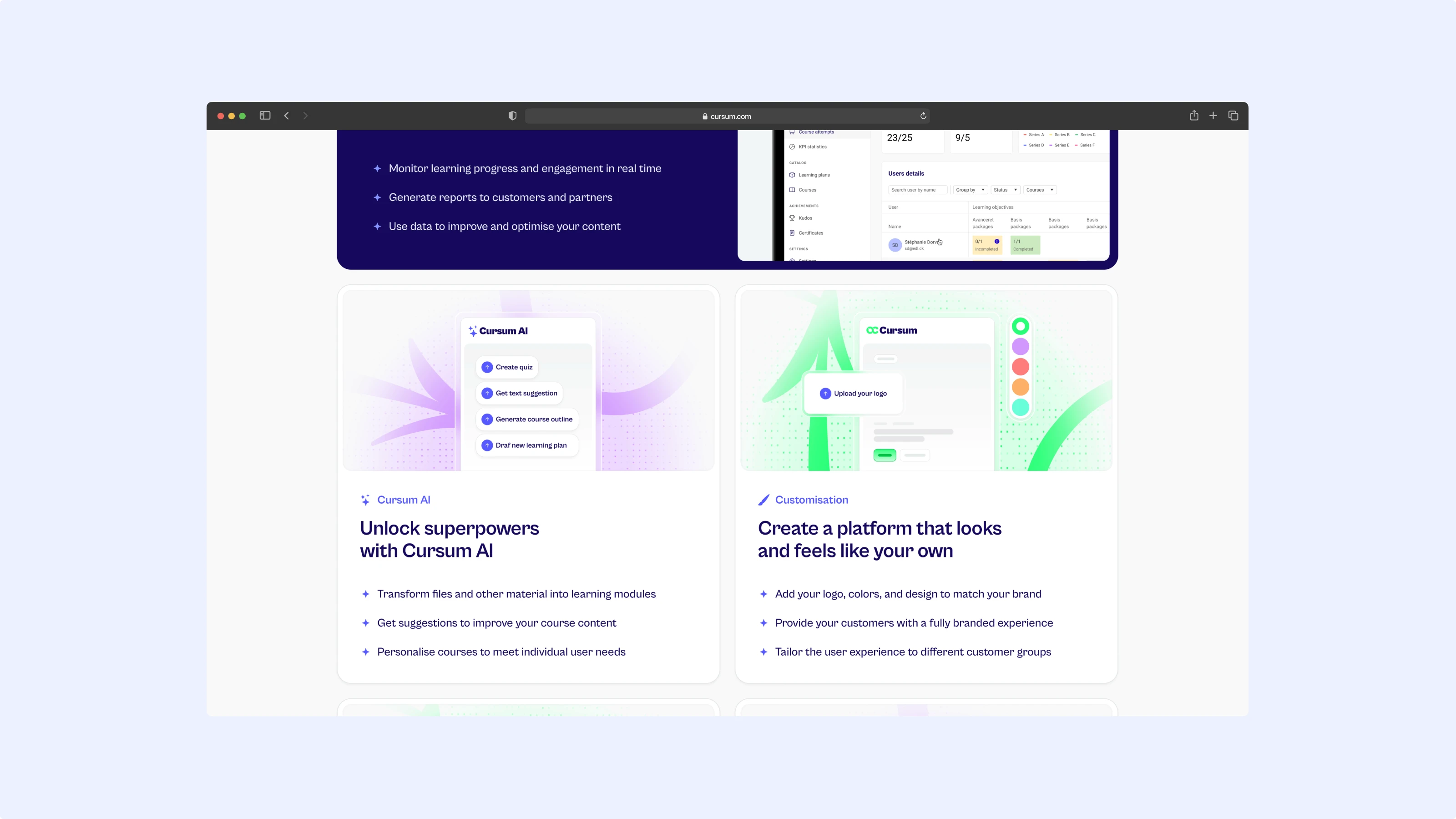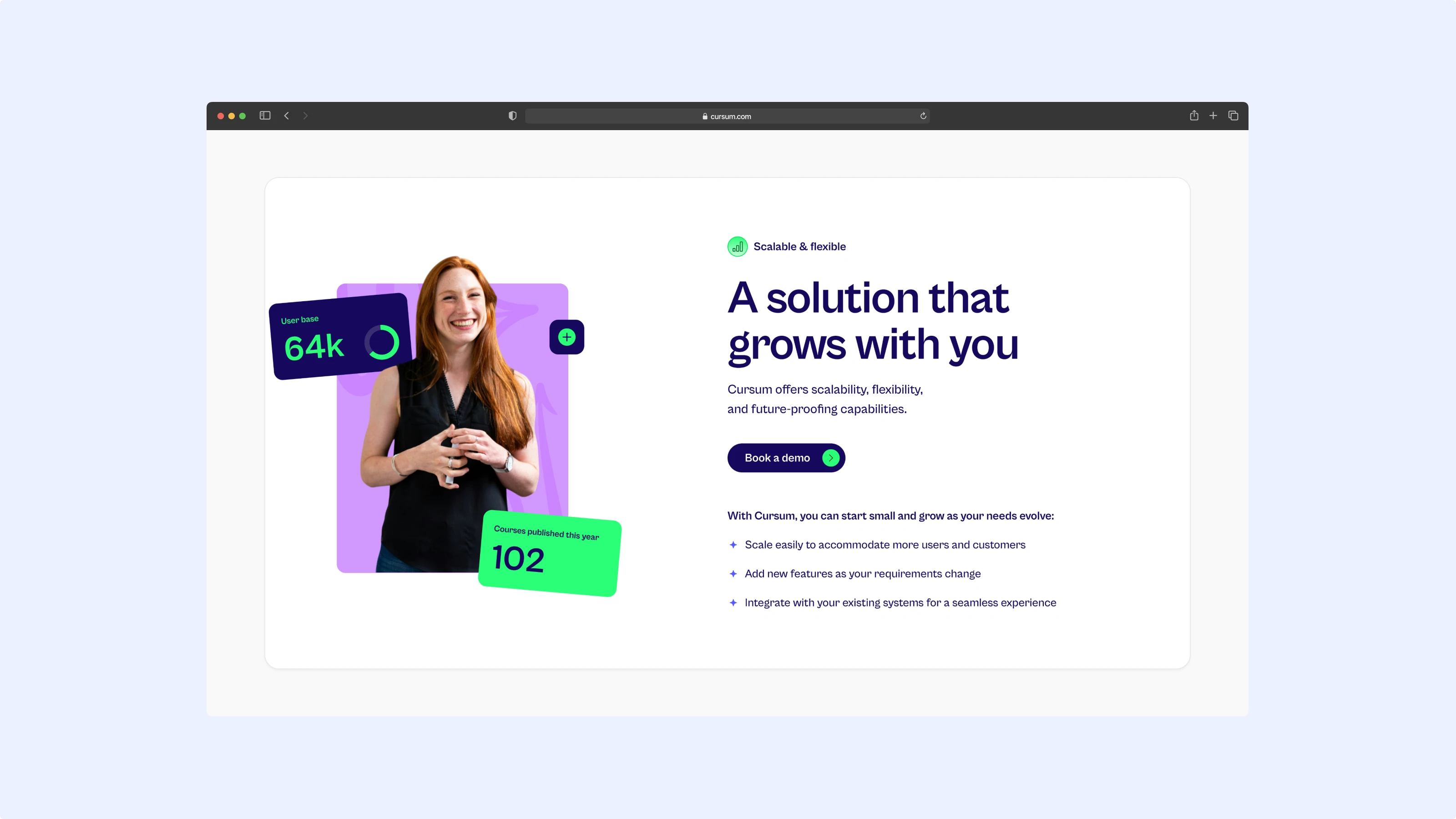 Cursum, a learning management SaaS targeting enterprise clients, came to us ready to evolve. They already had a strong foundation: a recognisable name, existing website, and an established brand. But their visual identity didn’t reflect where they were heading.