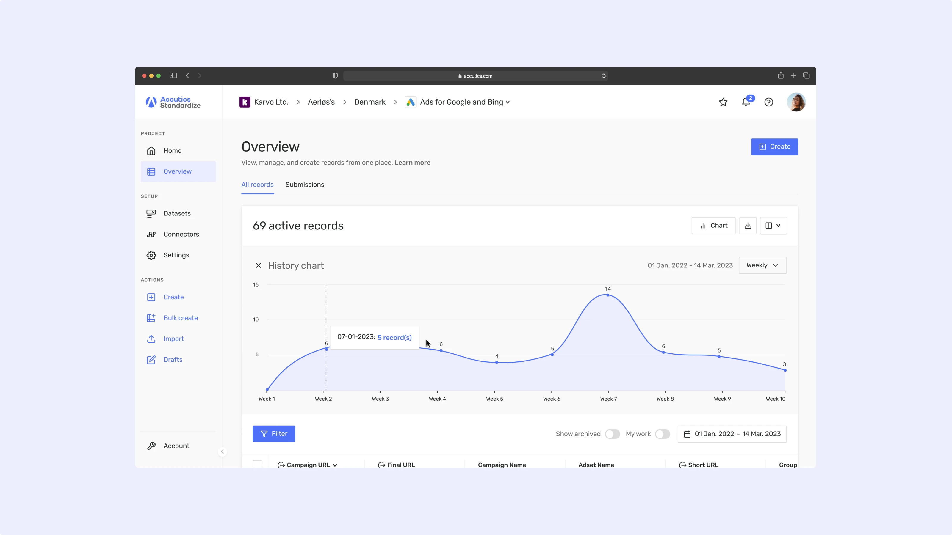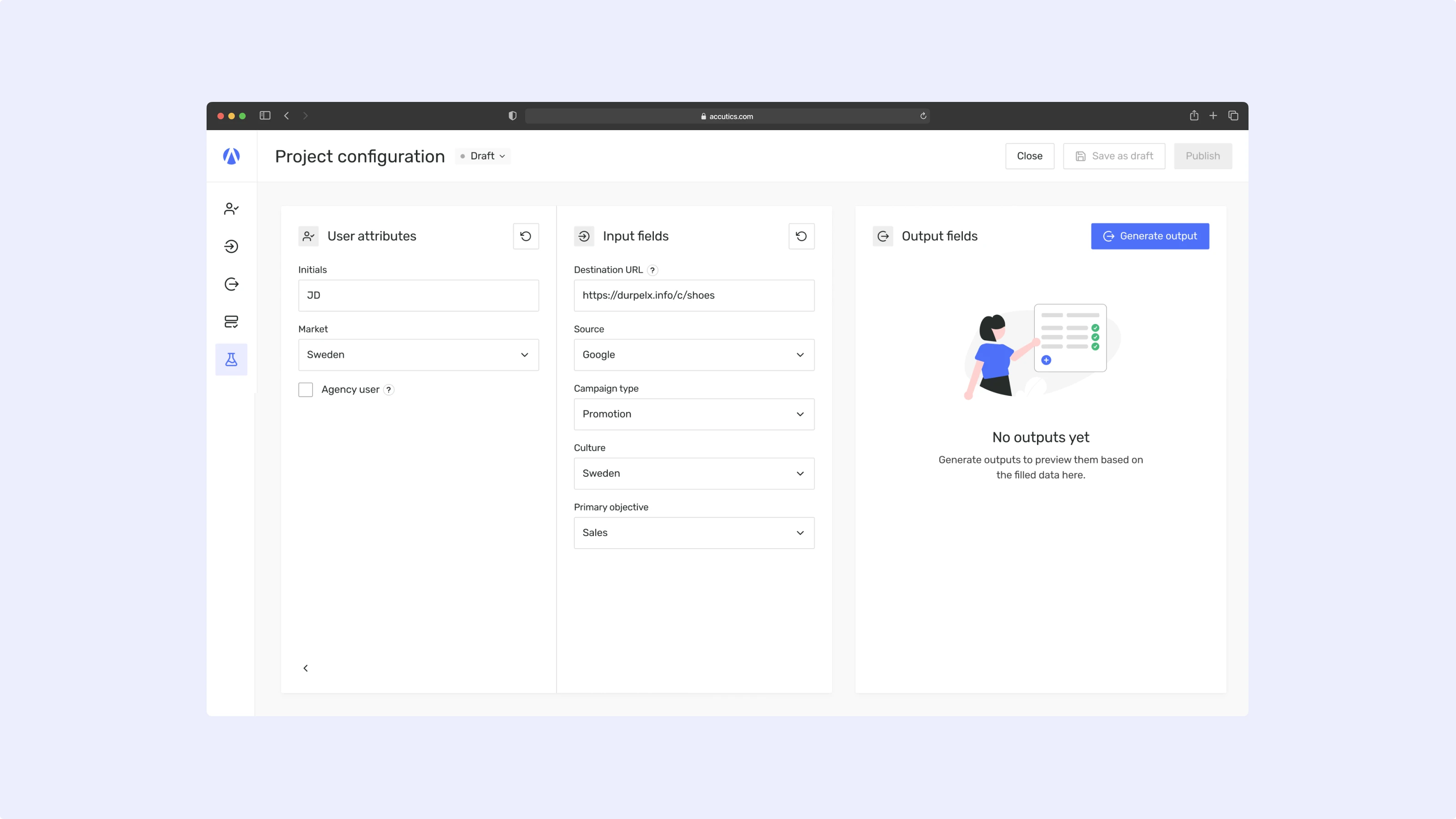 Accutics helps enterprises streamline and standardise their marketing data, making campaign tracking more accurate and compliant. We've worked closely with their team over the years, building a strong partnership. After a period where design was handled in-house, we're now re-engaged to support the next phase of their Martech SaaS platform.