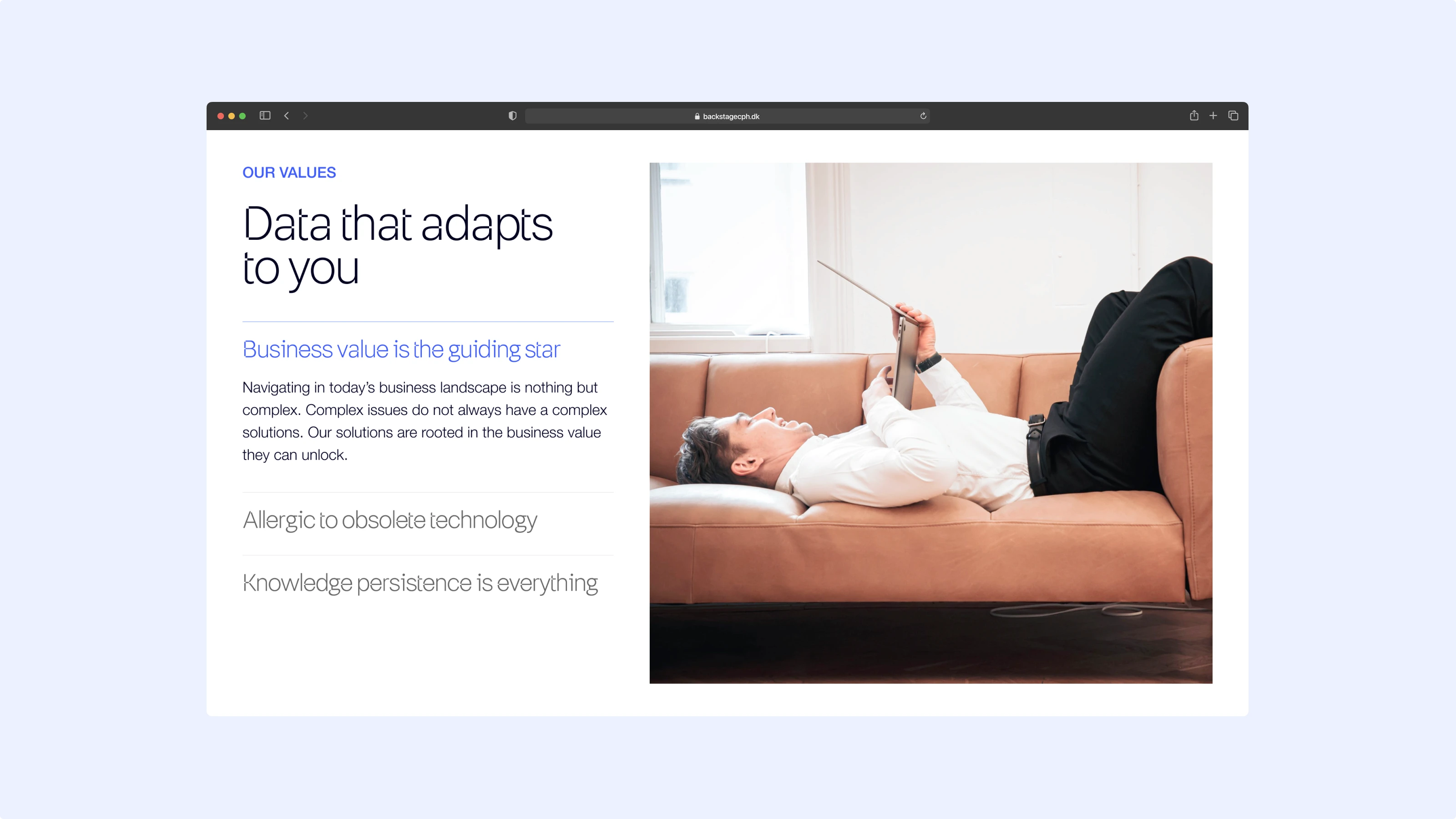 The goal was to establish a visual foundation that not only reflects Backstage’s expertise but also aligns with their evolved industry position, helping them attract the right talent and clients while increasing their impact in the data consultancy space.