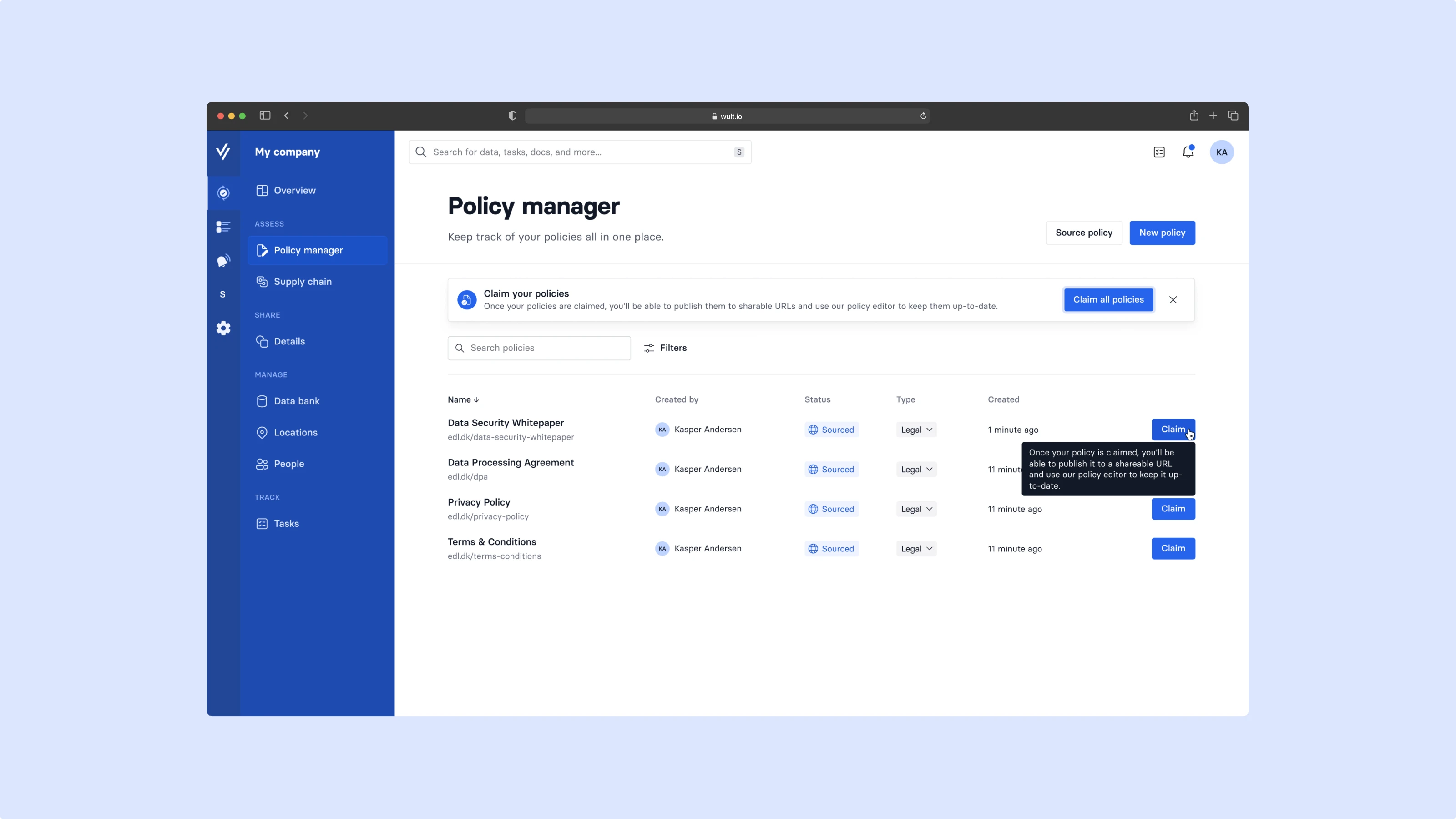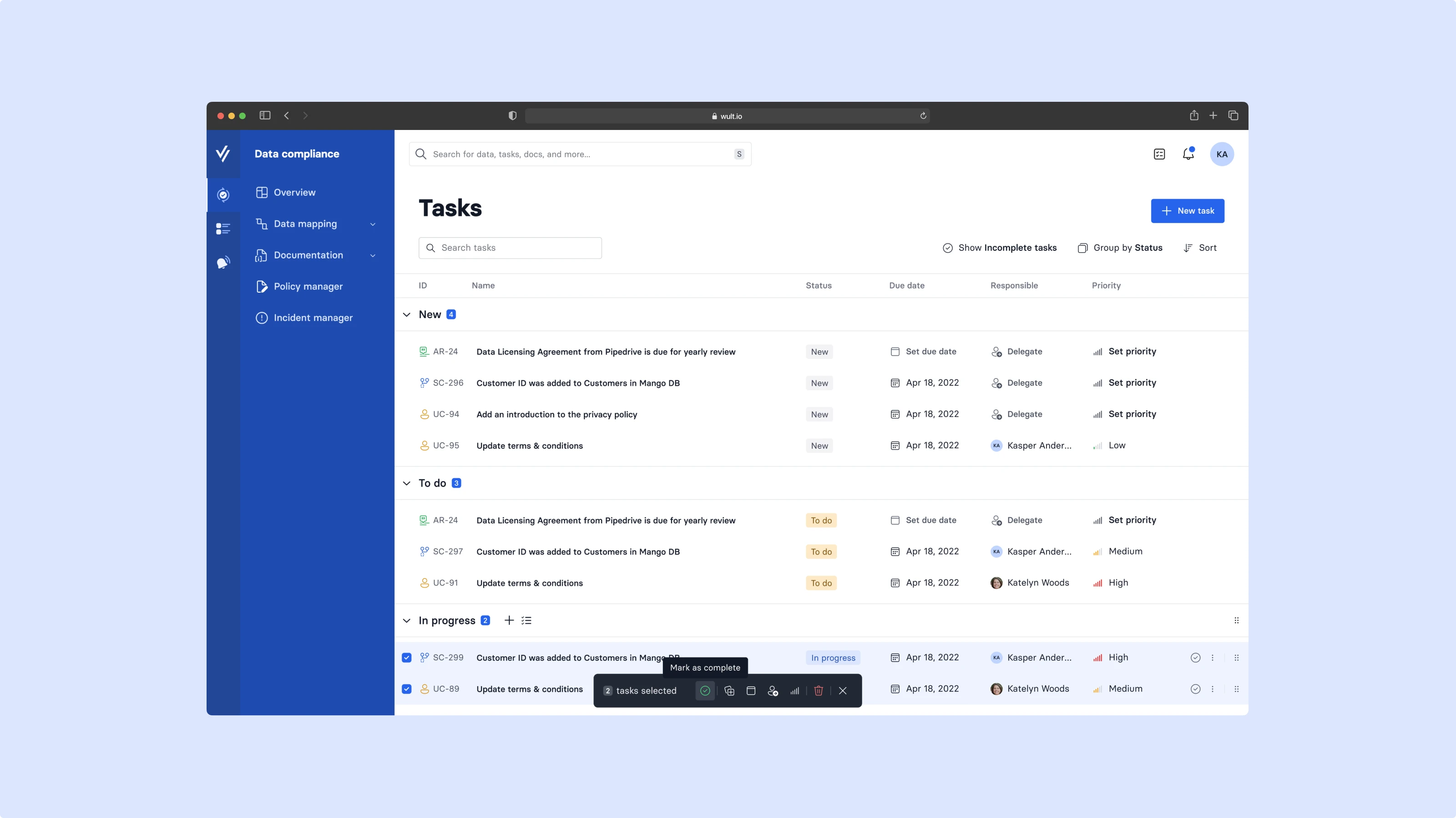 Our focus was on translating that ambition into a strong product foundation. We designed a UX that supports efficient workflows, a scalable design system for future development, and a visual language that reflects the professionalism and reliability required in compliance tech.